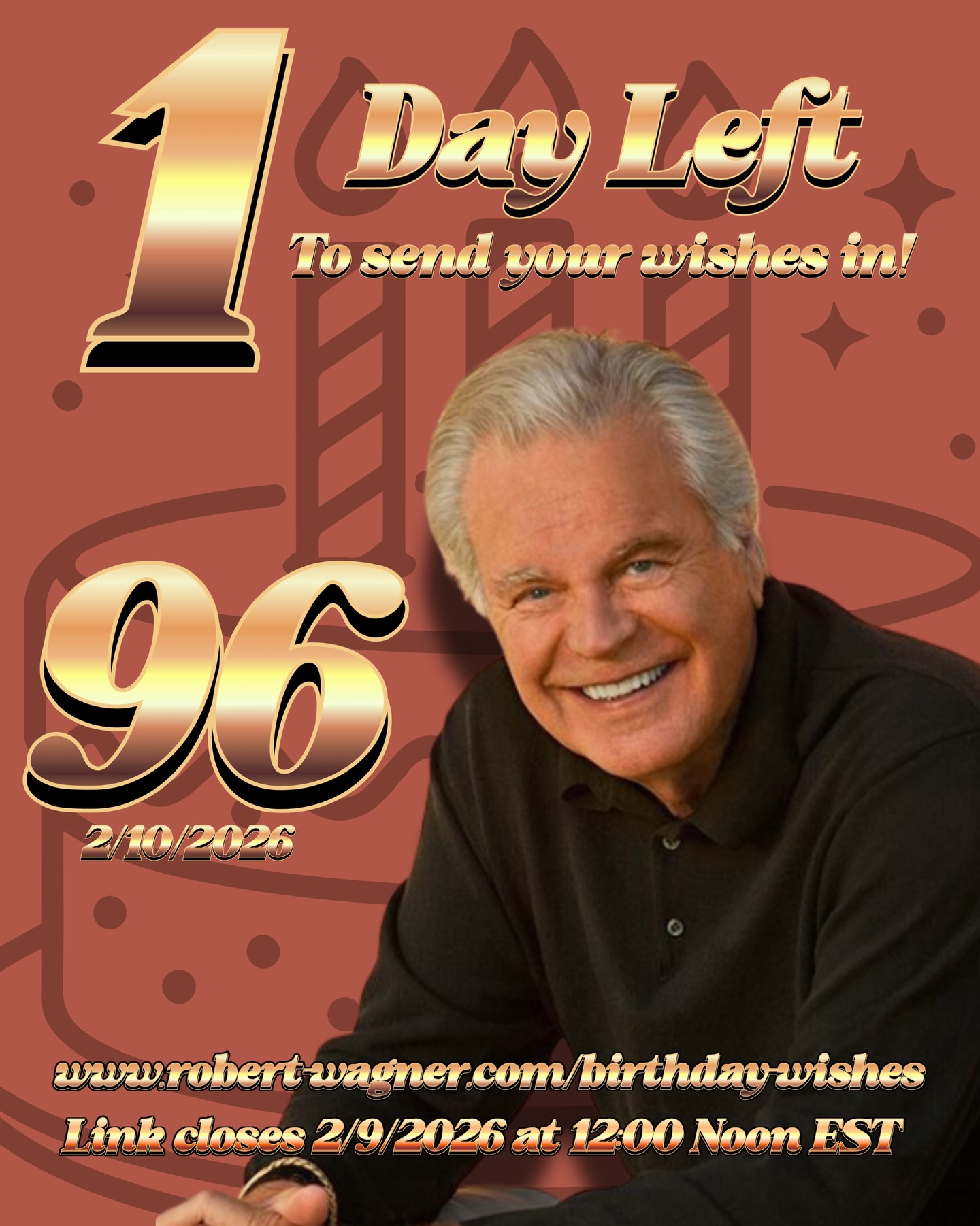 Home2 It's RJ's 96th birthday on February 10th. Click on the image to visit the birthday page. “You can’t look in those eyes and see that smile and not smile yourself “ – Jill St John From A&E’s Biography BiographyRobert Wagner is one of the most popular and successful stars in the entertainment industry… View BiographyCreditsAll of Robert Wagner’s Movies, Television, Pro-ductions, Guest Appearances, Music View CreditsPicturesPictures of Robert Wagner through the years, movies, TV shows, family, & so much more. View Pictures Q & A with R.J. Favorite Filming Location Favorite Film to Watch Favorite Actress to Work With Physically Most Demanding Role